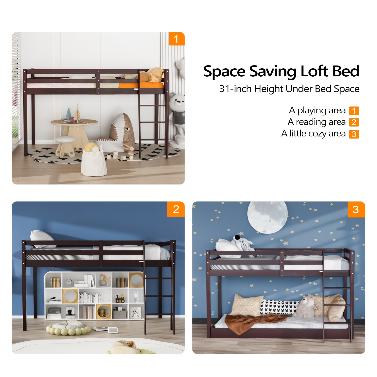 Bonnlo Twin\u002FFull Low Loft Bed with Inclined Stairs - Solid Wood & MDF Bunk Bed Frame, High Guard Rail, No Box Spring Needed, Space-Saving Bed for,,, Small Rooms (No Assembly Required)