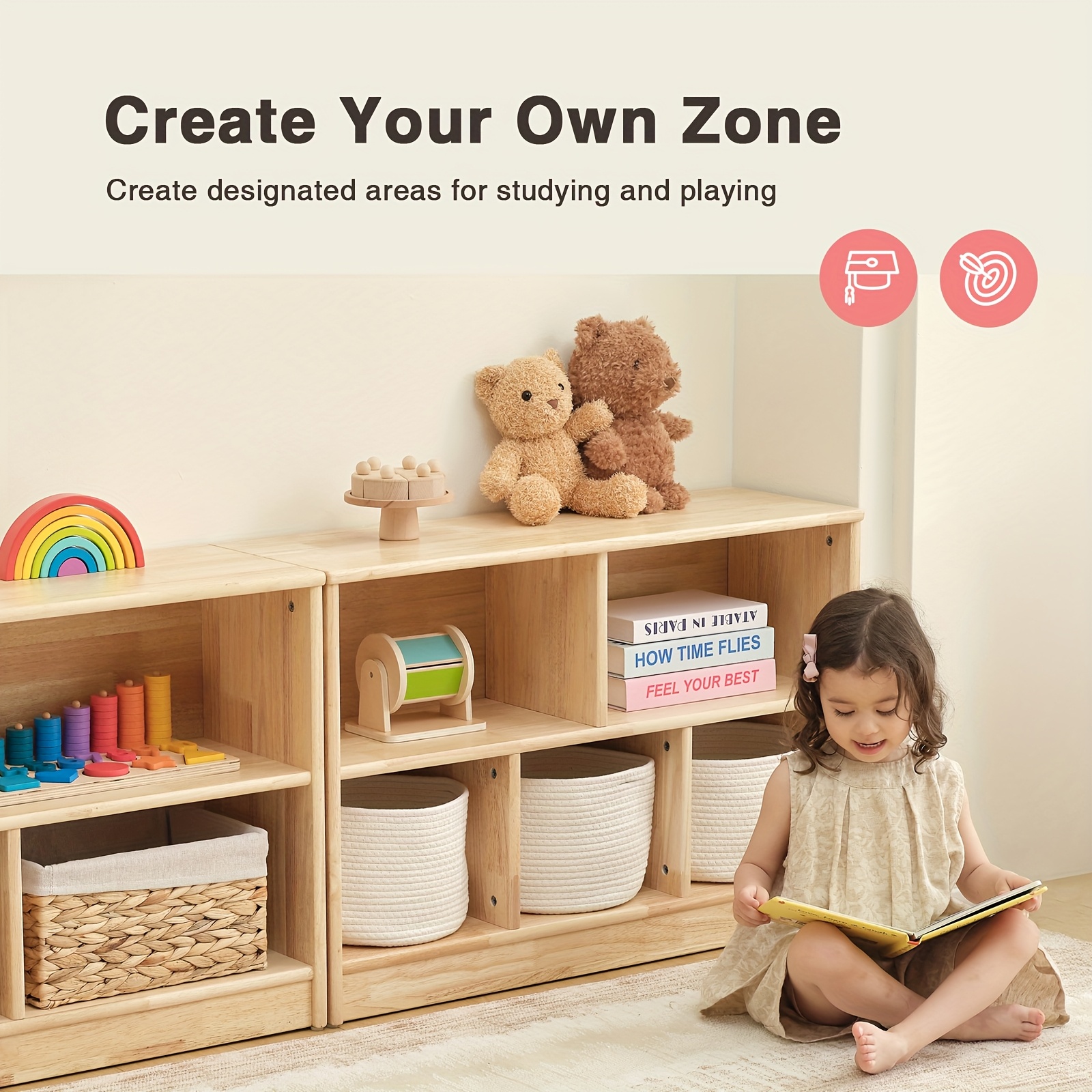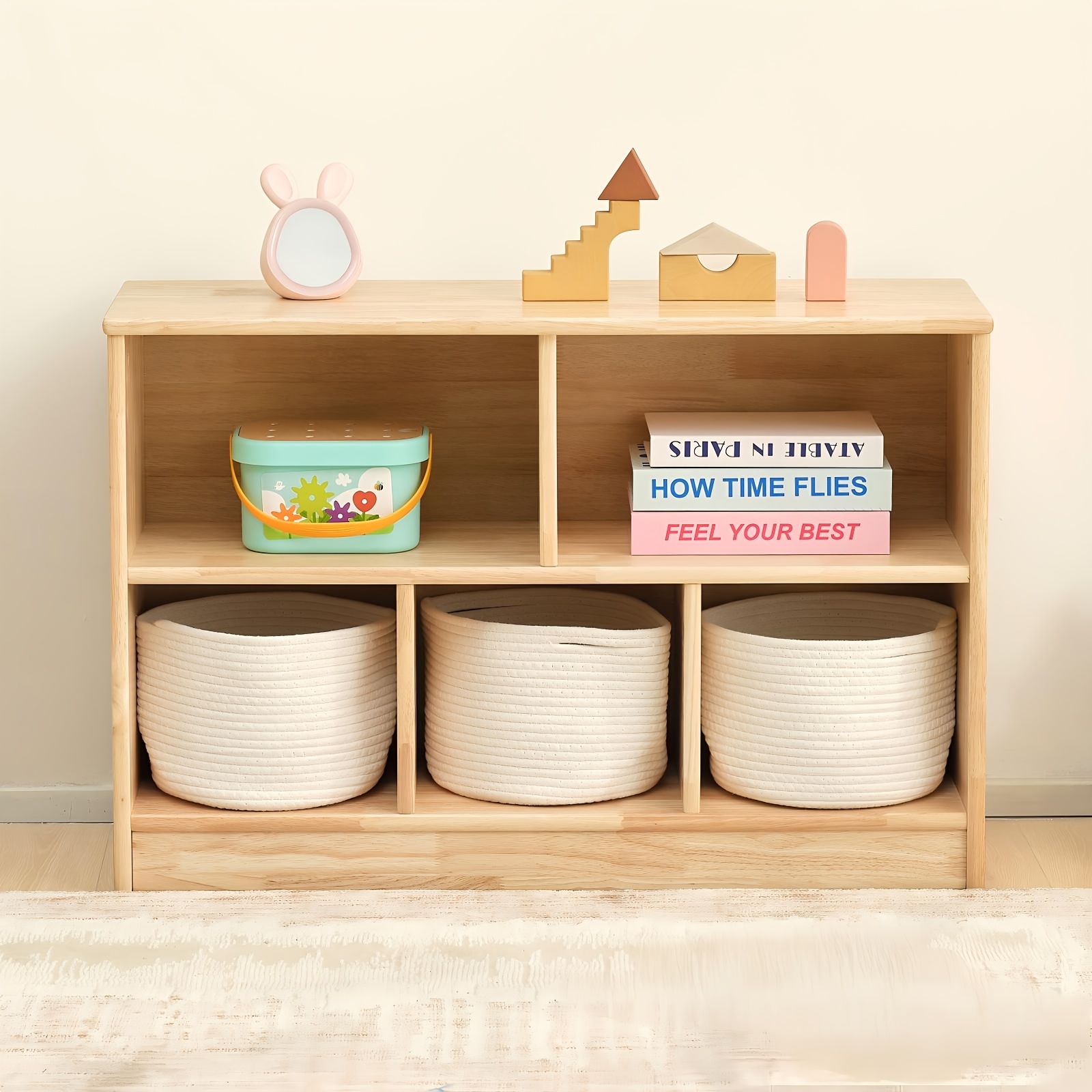 Rubber Wood 5-Compartment Book Shelf, 35.4\